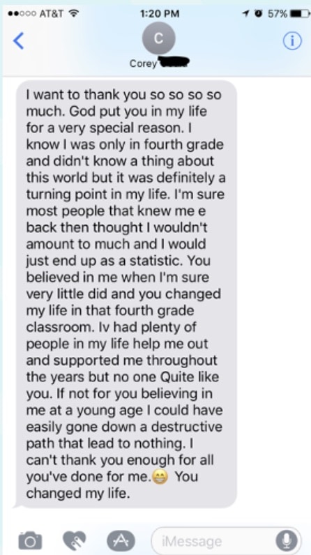 “I love a note from a parent with heartfelt, kind words. The kids are still kind of young to truly put “appreciation” into words but hearing from their parents really means a lot.”